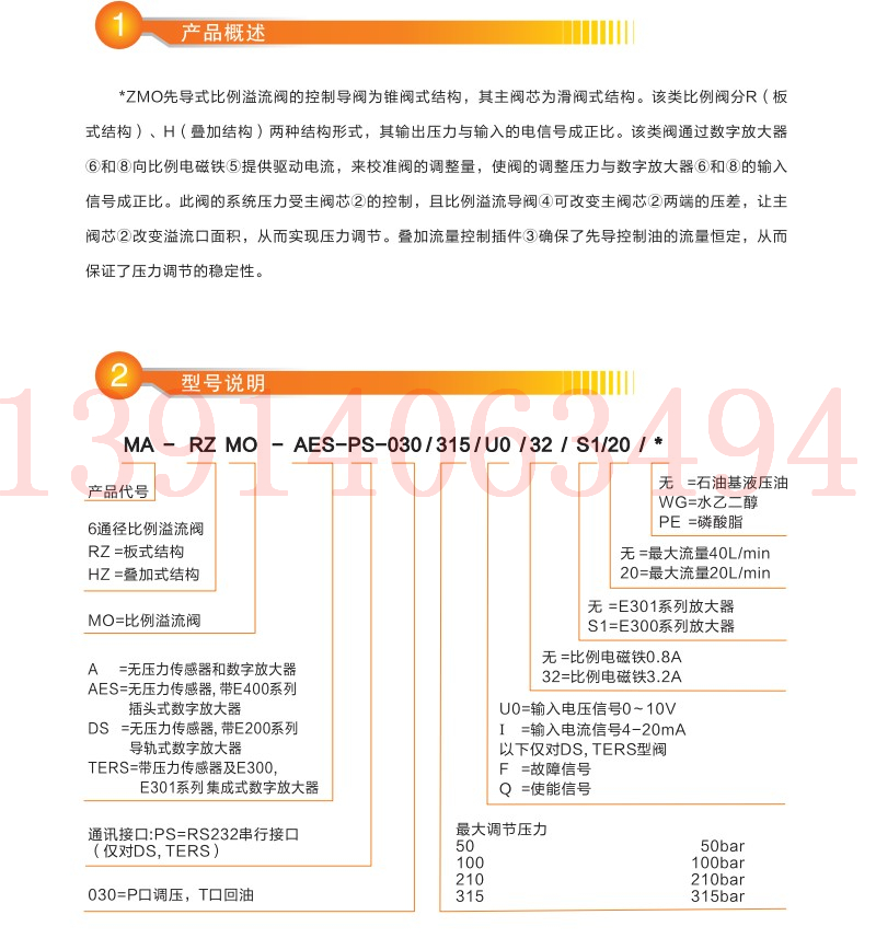 MA-RZMO/HZMO-A/AES/DS/TERS-PS-010先導(dǎo)式比例溢流閥